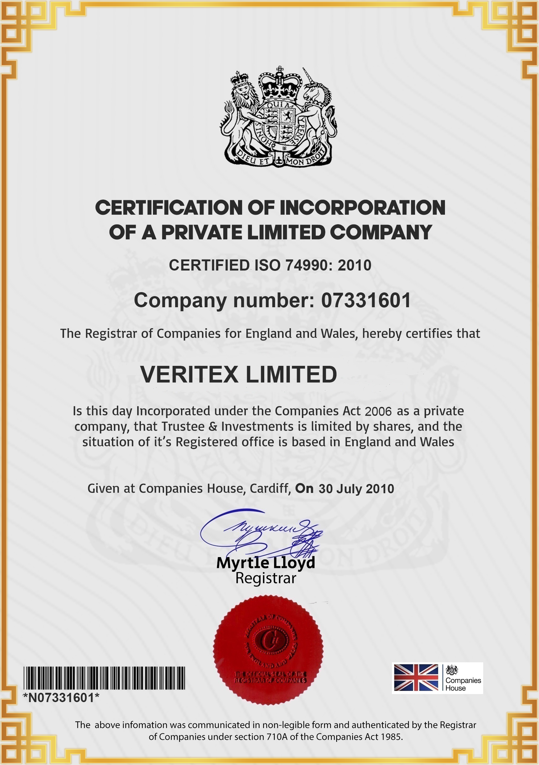 veritexcapital-limited.com has been regulated since its creation in 2010 in the UK. We have registration in the department of Canada and after exceeding a volume of operations of 1 billion dollars per year we obtained an MSB License.